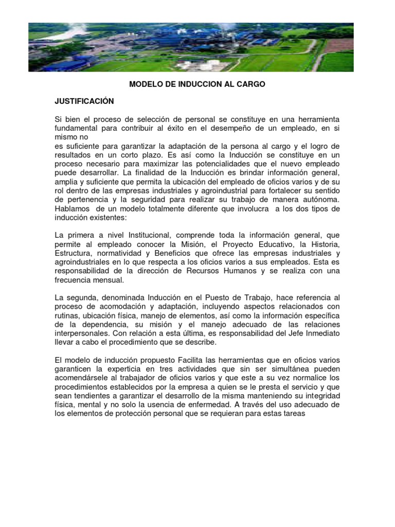 Modelo De Induccion Al Cargo Pdf Recursos Humanos Planificacion