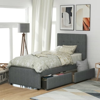 Twin Platform Bed With A Big Drawer Solid Wood Twin Size Bed Frame With Headborad 10 5 Under Bed Storage Space For Kids Teens Adults Bedroom Furniture No Box Spring Needed Grey Walmart Com